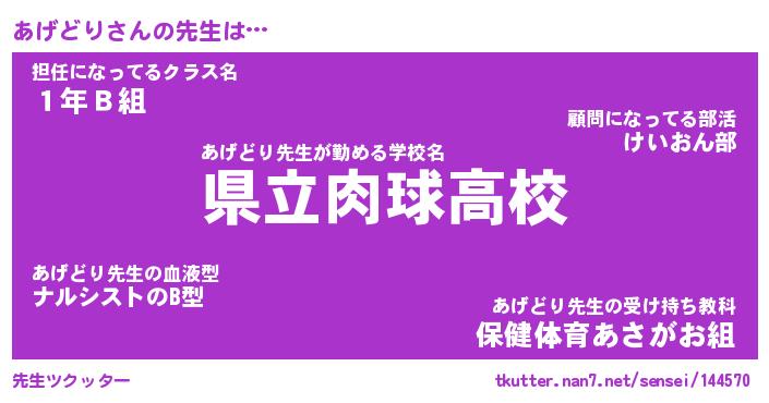 | ヘコむあだ名 | 『あげふぇ~』『牛乳』『あげっ子』 |