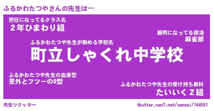 | 伝説のあだ名 | 『封印されしスナイパーふるかわたつや』 |