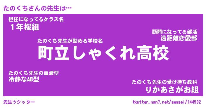 | ファンタジー風あだ名 | 『タノフェル』『エターナルタノクチー』 |