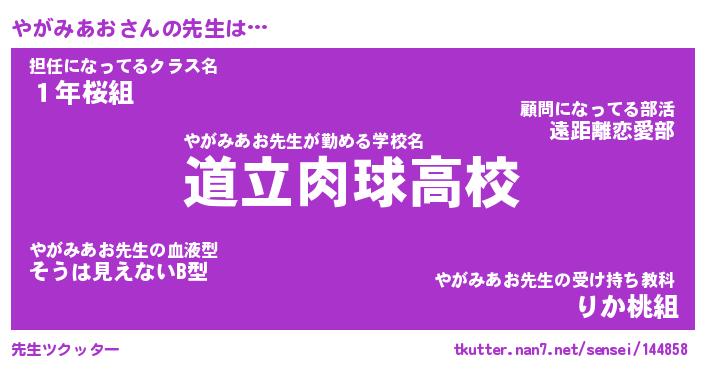 | ファンタジー風あだ名 | 『ヤガフェル』『エターナルヤガミアオー』 |
