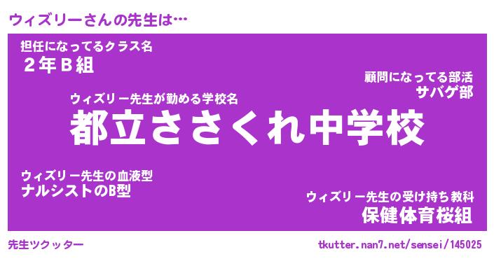 | ヘコむあだ名 | 『ウィもー』『つくし』『ウィっぺ』 |