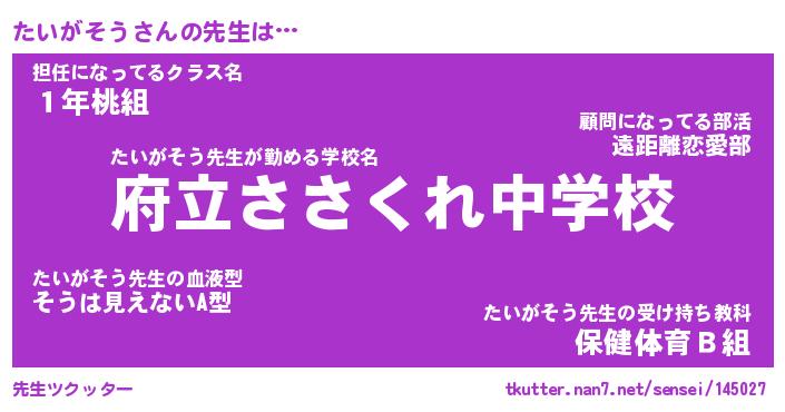 | ポケモン風あだ名 | 『タイチュウ』『タイガダネ』 |