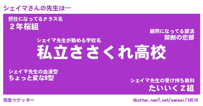 | 意味不明あだ名 | 『ペロリンシェイマ』『永久保存シェイマ』 |