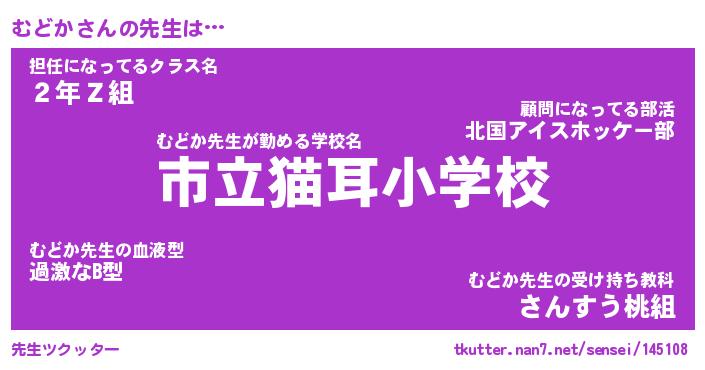 | ヘコむあだ名 | 『むどにー』『酢こんぶ』『むどを』 |