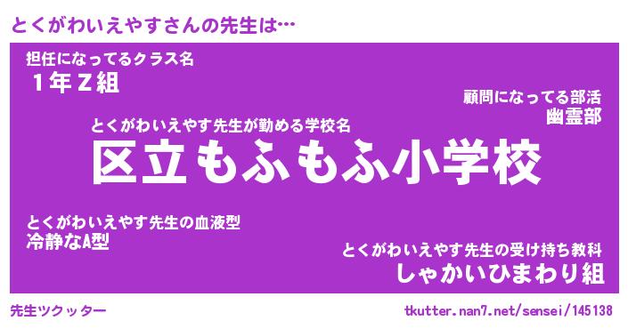 | ヘコむあだ名 | 『とくにゅー』『つくし』『とく太郎』 |