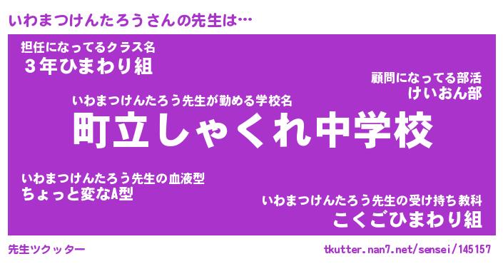 | 伝説のあだ名 | 『封印されしスナイパーいわまつけんたろう』 |