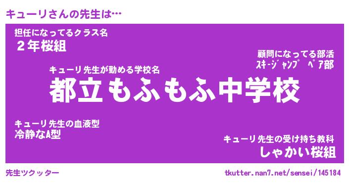 | ファンタジー風あだ名 | 『キュフェル』『エターナルキューリー』 |