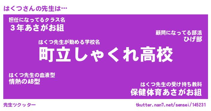 | ファンタジー風あだ名 | 『ハクフェル』『エターナルハクツー』 |