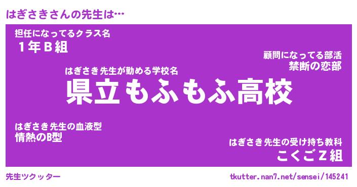 | ヘコむあだ名 | 『はぎにゅー』『つくし』『はぎ太郎』 |