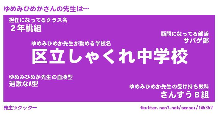 | ヘコむあだ名 | 『ゆめっふぃ~』『豆乳』『ゆめっ子』 |