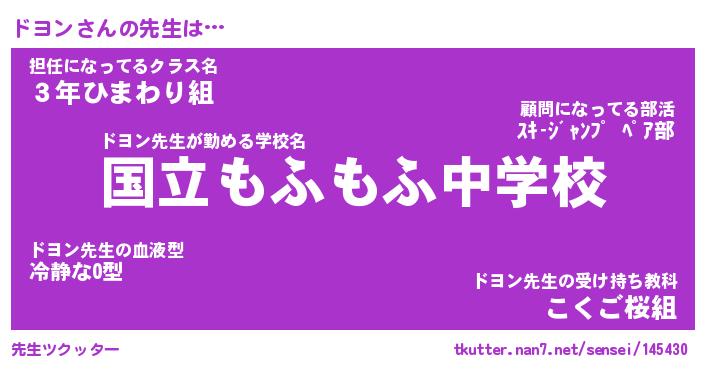 | ファンタジー風あだ名 | 『ドヨフェル』『エターナルドヨンー』 |