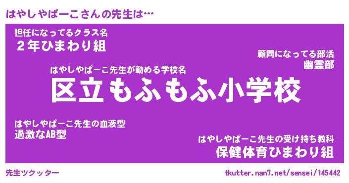 | 意味不明あだ名 | 『ペロリンはやしやぱーこ』 |