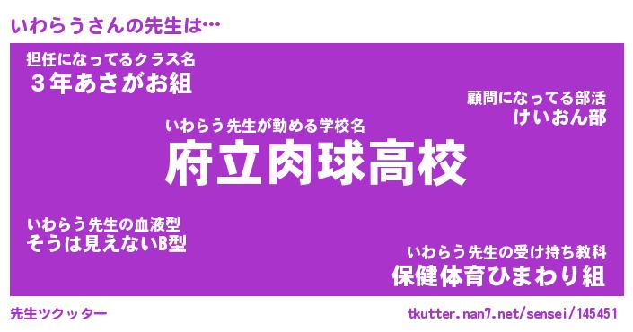| 意味不明あだ名 | 『ペロリンいわらう』『永久保存いわらう』 |