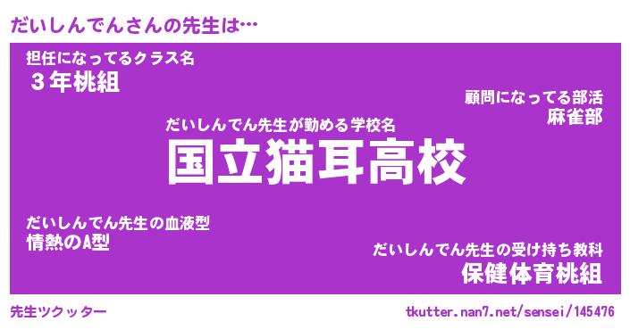 | ポケモン風あだ名 | 『ダイチュウ』『ダイシダネ』 |