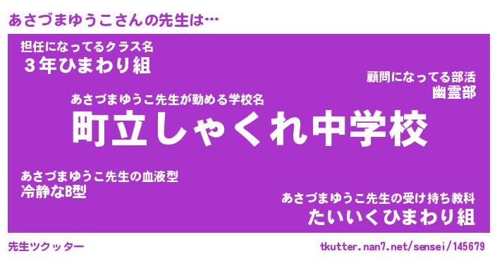 | 伝説のあだ名 | 『封印されしスナイパーあさづまゆうこ』 |