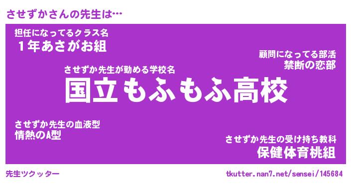 | ファンタジー風あだ名 | 『サセフェル』『エターナルサセズカー』 |