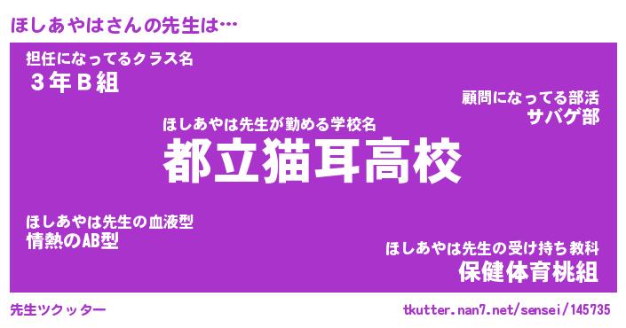 | ファンタジー風あだ名 | 『ホシフェル』『エターナルホシアヤハー』 |