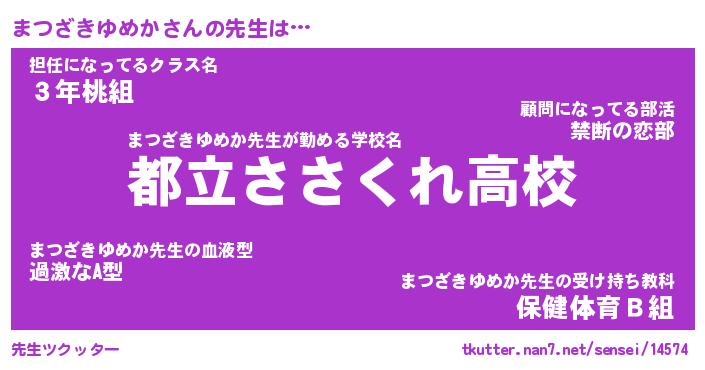 | 恥ずかしいあだ名 | 『プリティーまつざきゆめか』『まつちん』 |