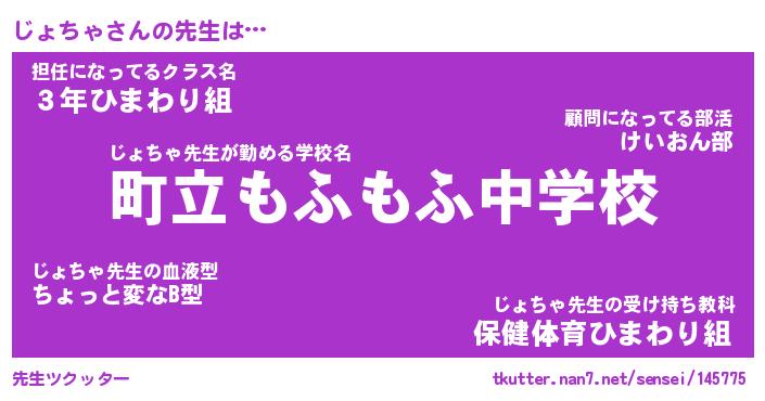 | 意味不明あだ名 | 『ペロリンじょちゃ』『永久保存じょちゃ』 |