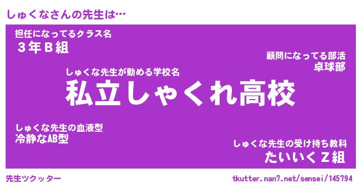 | 伝説のあだ名 | 『伝説のスナイパーしゅくな』 |