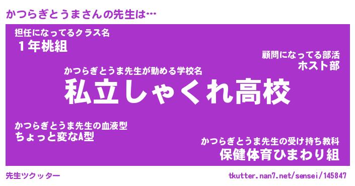 | 伝説のあだ名 | 『伝説のスナイパーかつらぎとうま』 |