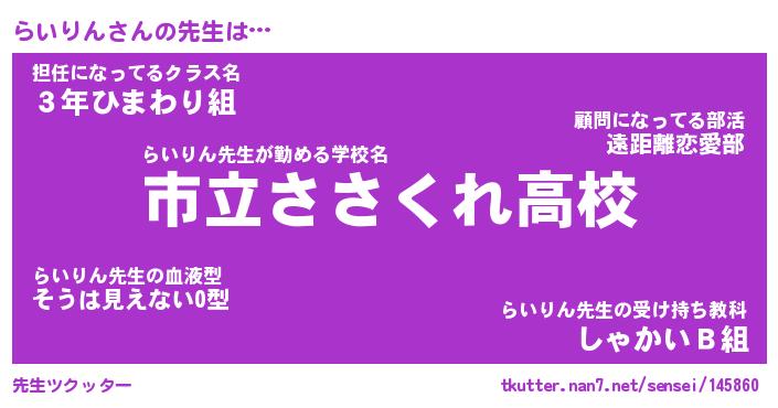 | 意味不明あだ名 | 『ペロリンらいりん』『永久保存らいりん』 |