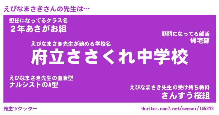 | ヘコむあだ名 | 『えびもー』『なまこ酢』『えびっ子』 |