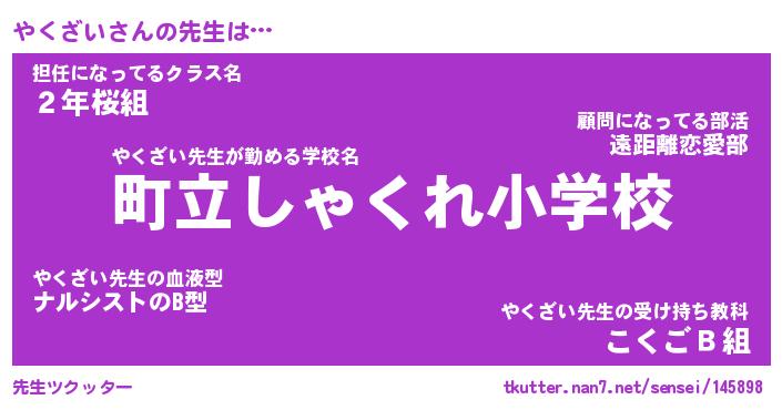 | ヒーロー風カッコイイあだ名 | 『スーパーヤクザイ』『炎刃騎士ヤク』 |