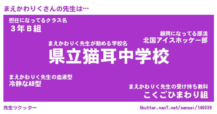 | ポケモン風あだ名 | 『マエチュウ』『マエカダネ』 |