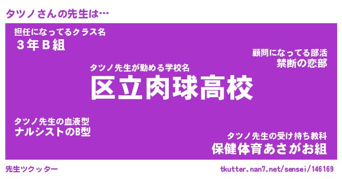 | ヘコむあだ名 | 『タツふぇ~』『酢こんぶ』『タツお』 |