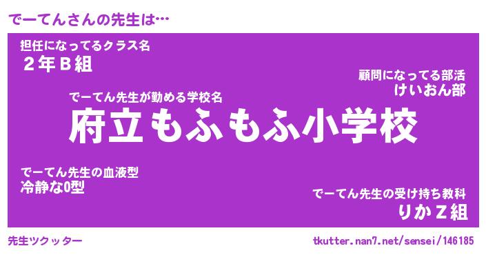 | 意味不明あだ名 | 『ペロリンでーてん』『永久保存でーてん』 |