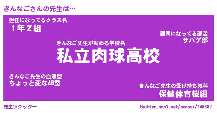 | 意味不明あだ名 | 『ペロリンきんなご』『永久保存きんなご』 |