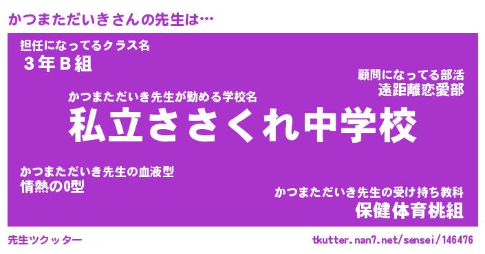 | ポケモン風あだ名 | 『カツチュウ』『カツマダネ』 |