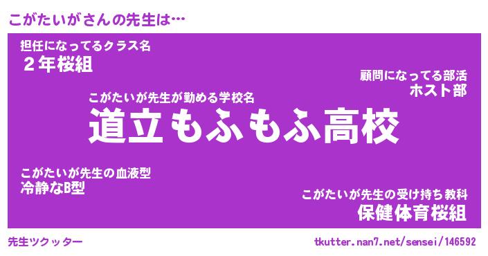| ファンタジー風あだ名 | 『コガフェル』『エターナルコガタイガー』 |