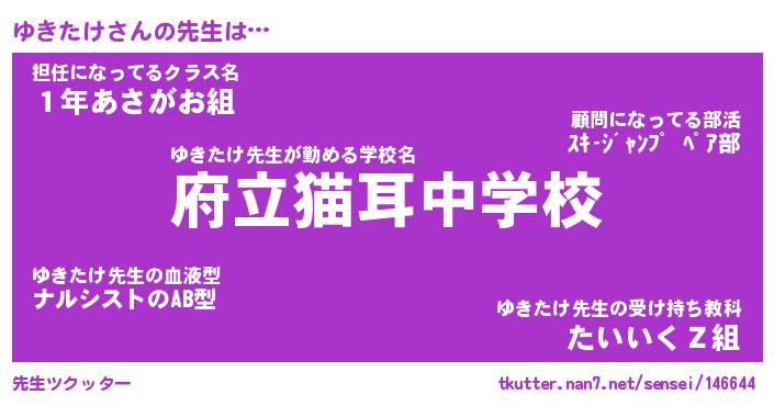 | ファンタジー風あだ名 | 『ユキフェル』『エターナルユキタケー』 |