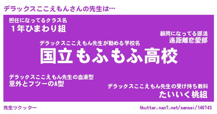 | 男性向けラノベタイトル風あだ名 | 『デラックスここえもんの憂鬱』 |