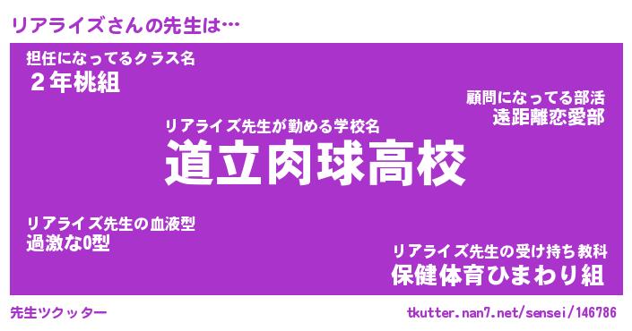 | ヘコむあだ名 | 『リアふぇ~』『なまこ酢』『リアお』 |