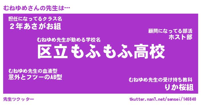 | ファンタジー風あだ名 | 『ムネフェル』『エターナルムネユメー』 |