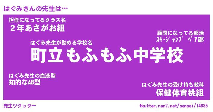 | ヘコむあだ名 | 『はぐにゅー』『酢こんぶ』 |