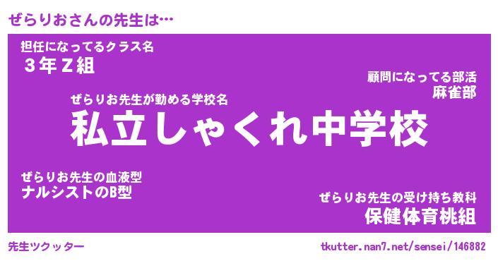 | 意味不明あだ名 | 『ペロリンぜらりお』『永久保存ぜらりお』 |