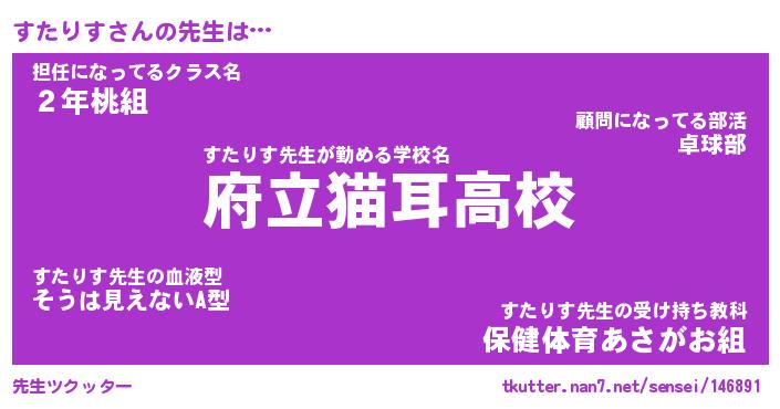 | 意味不明あだ名 | 『ペロリンすたりす』『永久保存すたりす』 |