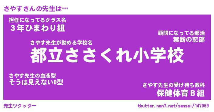| ファンタジー風あだ名 | 『サヤフェル』『エターナルサヤスー』 |