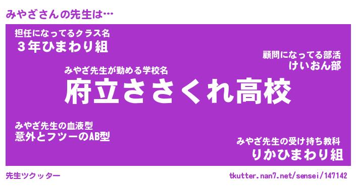 | ファンタジー風あだ名 | 『ミヤフェル』『エターナルミヤザー』 |