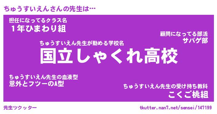 | 男性向けラノベタイトル風あだ名 | 『ちゅうすいえんの憂鬱』 |
