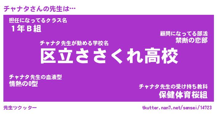 | 意味不明あだ名 | 『ペロリンチャナタ』『永久保存チャナタ』 |