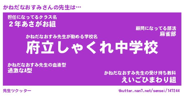 | ヘコむあだ名 | 『かねっふぃ~』『なまこ酢』 |