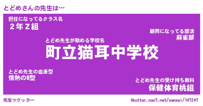 | ヘコむあだ名 | 『とどにー』『なまこ酢』 |