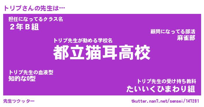 | 意味不明あだ名 | 『ペロリントリプ』『トリプフォーエバー』 |