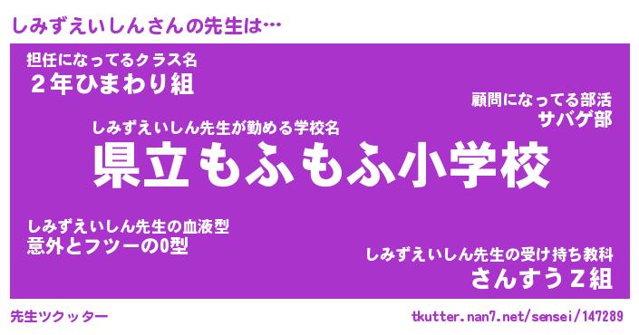 | ヘコむあだ名 | 『しみにゅー』『なまこ酢』 |