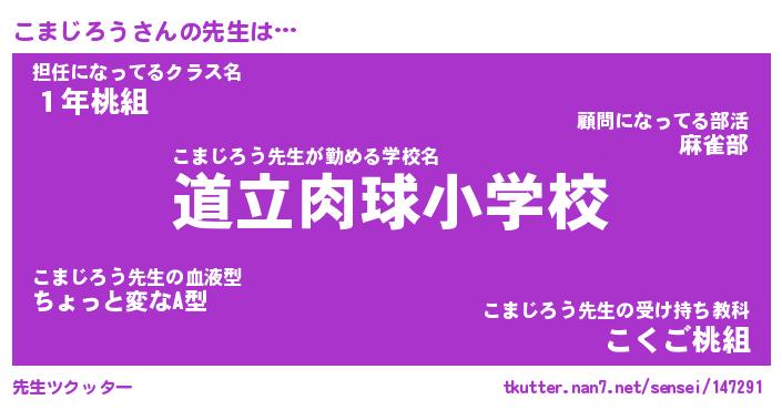 | ファンタジー風あだ名 | 『コマフェル』『エターナルコマジロウー』 |
